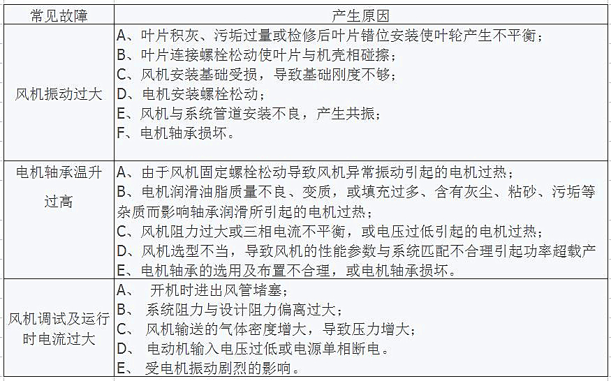 風機運行時的常見故障和原因