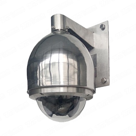 雙層不銹鋼設計,外形美觀、堅固耐用,防爆云臺、攝像儀、解碼器集成于一體,水平 360°,垂直 -5° -90°連續轉動;